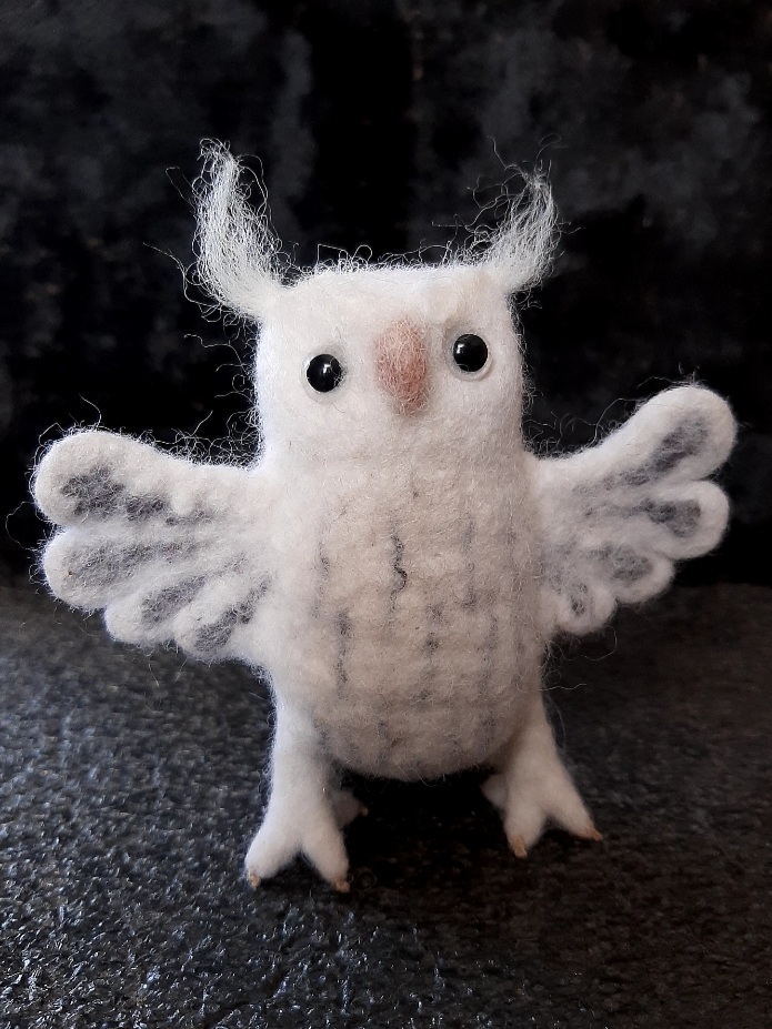 Увидела пальчикового аиста на одном из фото Ярославы, решила попробовать свалять по фото. Навыки к тому времени имелись, пришлось только подумать над оперением на шее и над доработкой базовой выкройки. Спасибо за курсы, Ярослава!