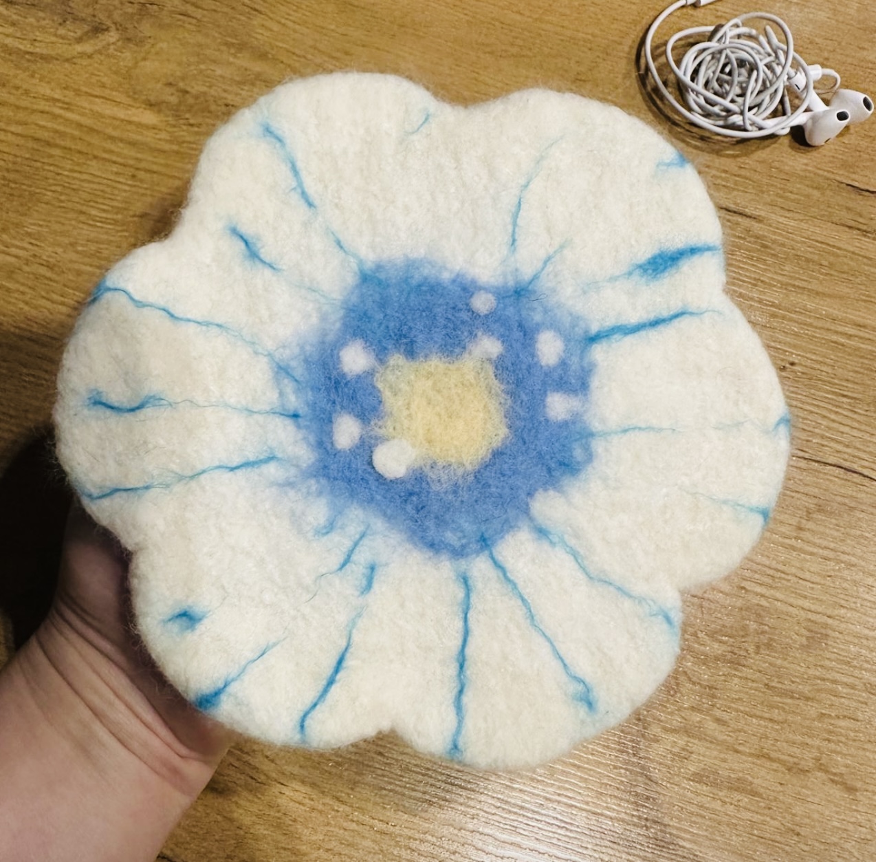Попробовали с дочкой (10 лет) сделать подставки под горячее по бесплатному мк. Валяли впервые- очень понравилось. Объяснения очень понятные, даже ребенок справился. Все родственники с подставками от дочи теперь. Спасибо за мк.