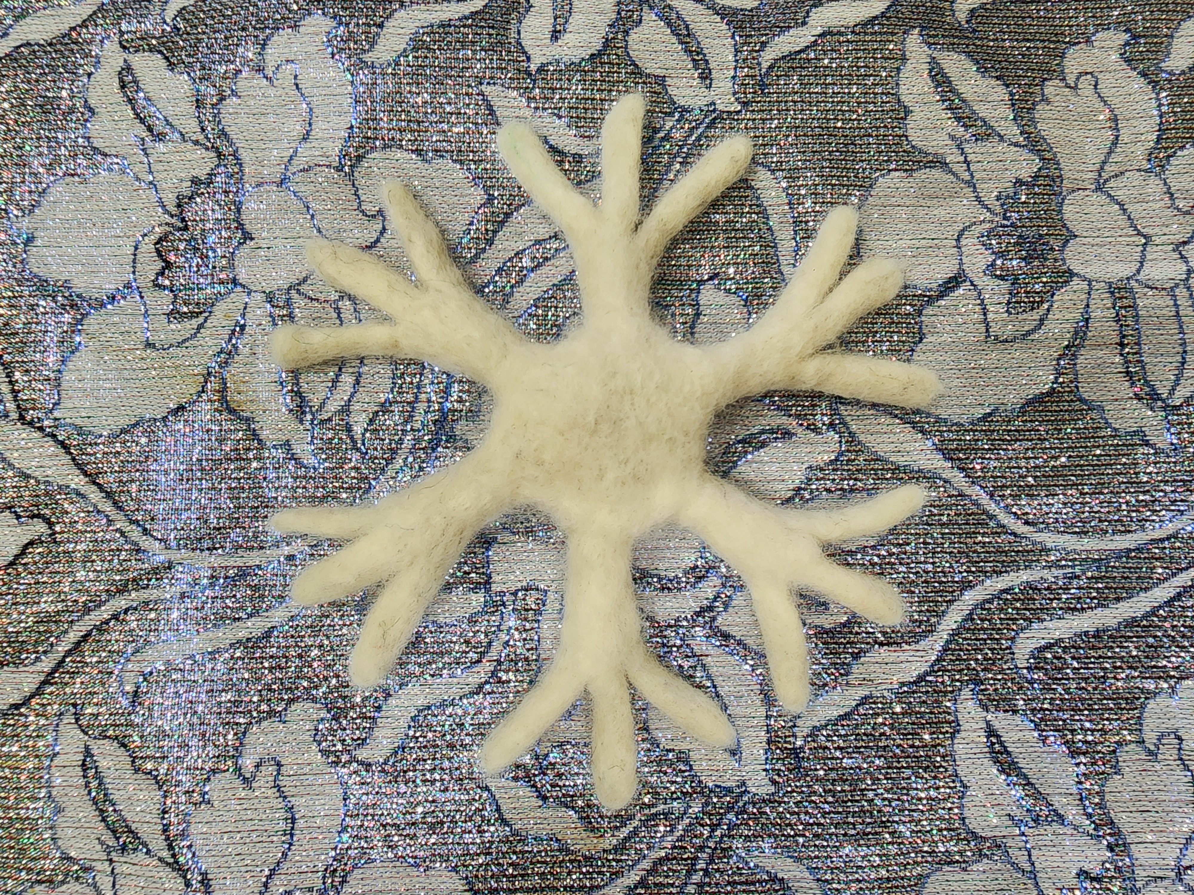 Люблю курсы Ярославы за их техничность! Выверено всё и проверено! Вот я валяя снежинку зачем то решила покатать раньше времени и работа получилась плоская, а вот вторую уже смотрела внимательнее и получилось более похоже! Благодарю тебя, Ярослава!