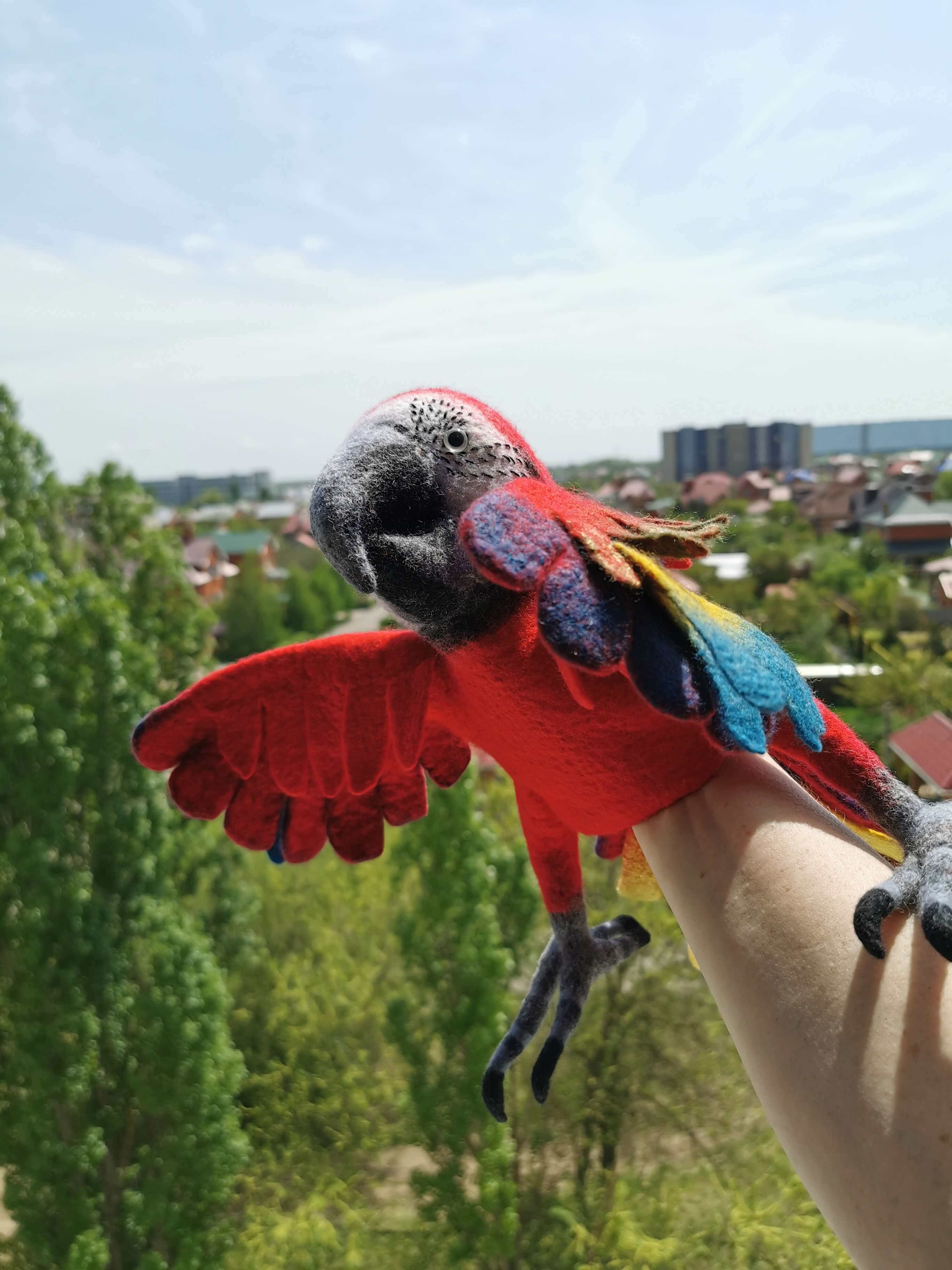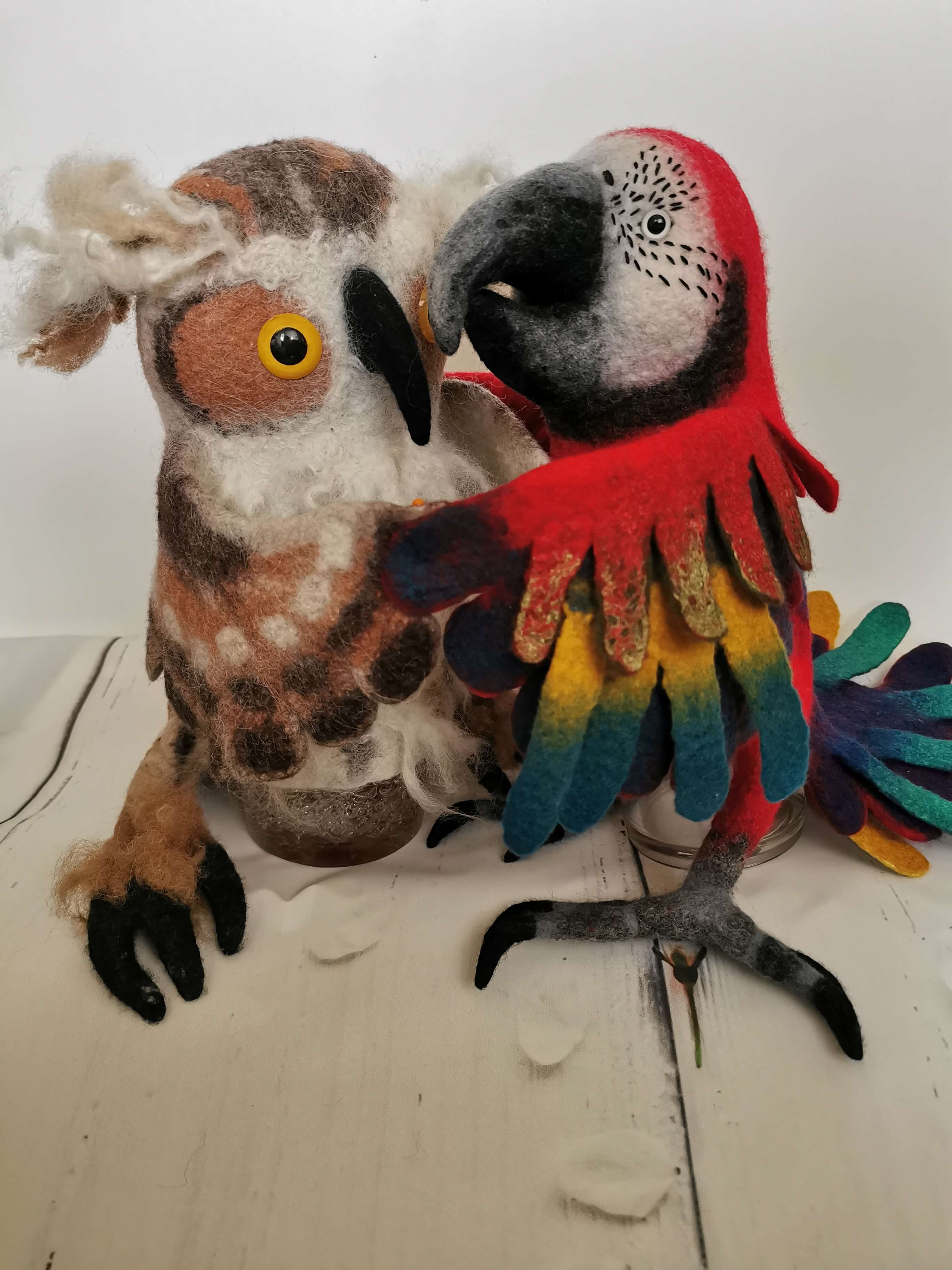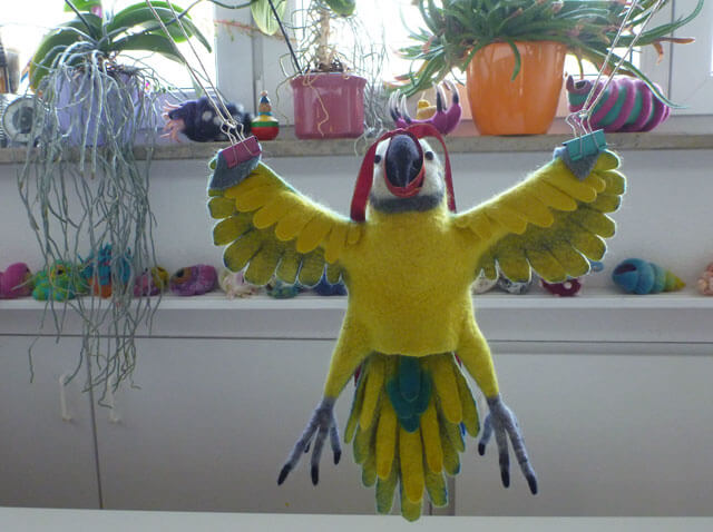 Большое спасибо, Яра, за такой курс. Влетела в последний вагон поезда, продав Чебурашек и заработав войлоком на войлок:) Была белая шерсть, поэтому валяла ару, и не жалею. Спасибо за технические новшества: работу с префельтом, лапами, клювом, поэтапность и цикличность валяния. Ара уже поработал в драматическом спектакле на театральном семинаре, так как я выбрала и получила роль попугая. А еще я сваляла курьи ножки для избушки Бабы Яги к выпускному спектаклю в детском саду, вообщем, интегрирую опыт в жизнь. С каждым курсом с Ярой мое мастерство растет, именно в стримах я вытягиваю себя за волосы к лучшему качеству, а без Волшебного пендаля отМастера срабатывает торопышка, которому хочется скорее получить результат и не шлифовать. Поэтому работа с Ярой- шанс развить в себе качество усердия и прикоснуться к перфекционизму и профессионализму.