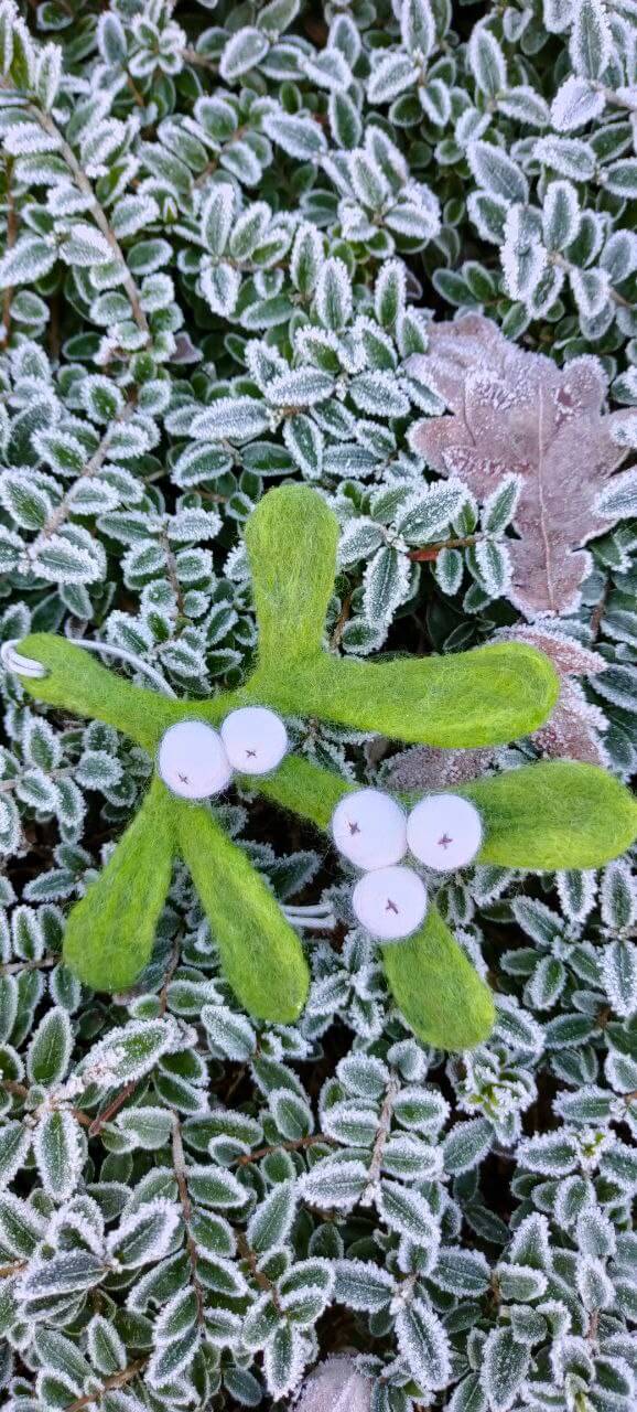 Доброго времени! Спасибо Яра за столько красоты, которая появилась благодаря мастер-классам и стримам! Прикрепляю мои предновогодние поделки - омелу и зайку. Зайка живет у одной маленькой девочки (1,6 г), ходит с ней в ясли и уже прошел все испытания: и суп, и стирку (3 раза), и ежедневную карманную жизнь, был покусан, обслюнявен и остается как новенький)) Войлок - это ВЕЩЬ!!!
