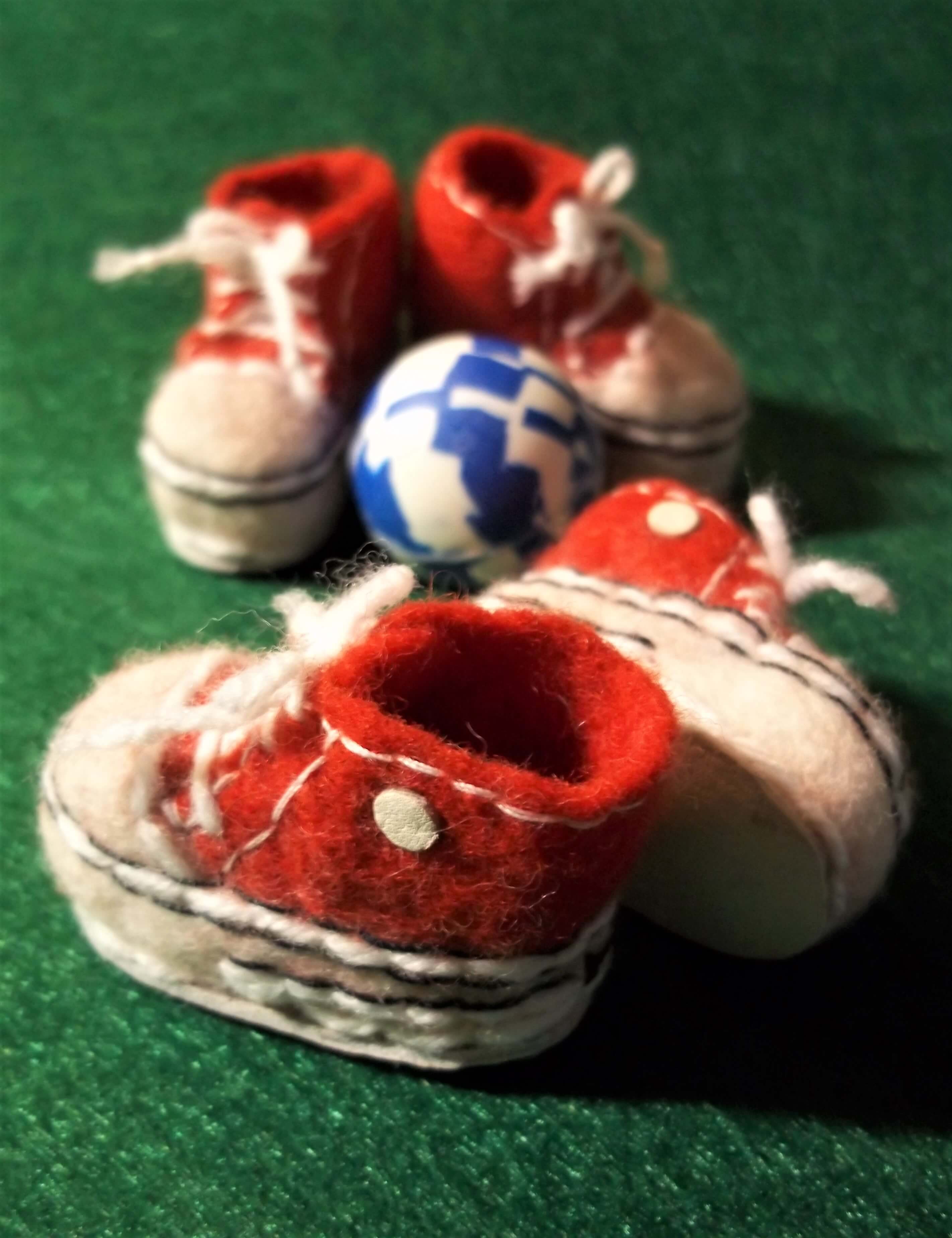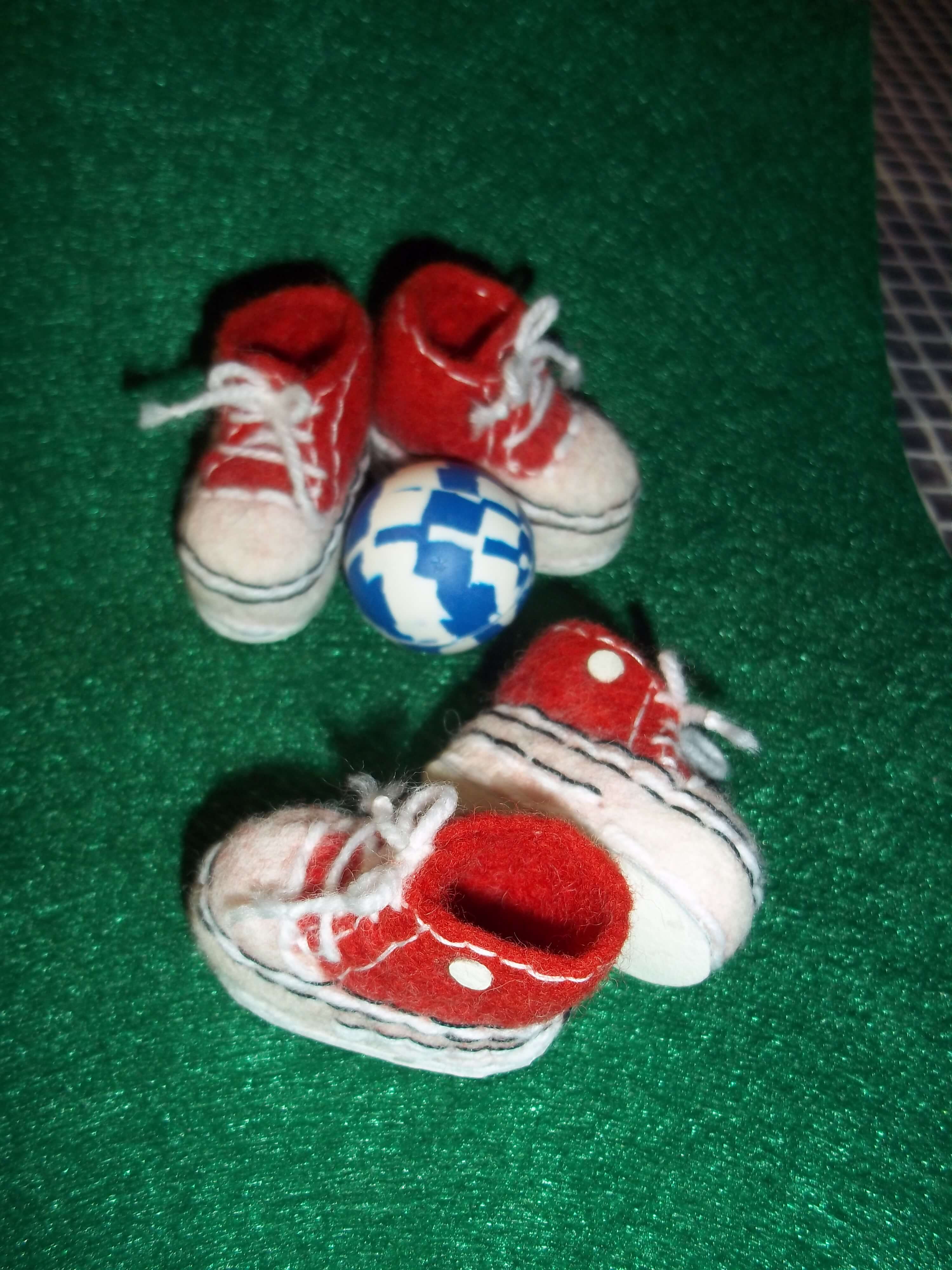 Без Курсов Ярославы ни дня!!! ? Получила заказ от внука - сделать две пары мини кед в подарок друзьям ?, как на Курсе по "Кролику-моднику" ? Все стало понятно, когда открыла пенал - там была вся зайцева обувь! ? они ими в пальчиковый футбол играют! ⚽ ? Так что еще вариант подарка мальчишкам к празднику, а м.б. подвеской в машину, мячик тоже можно сделать валяный ?