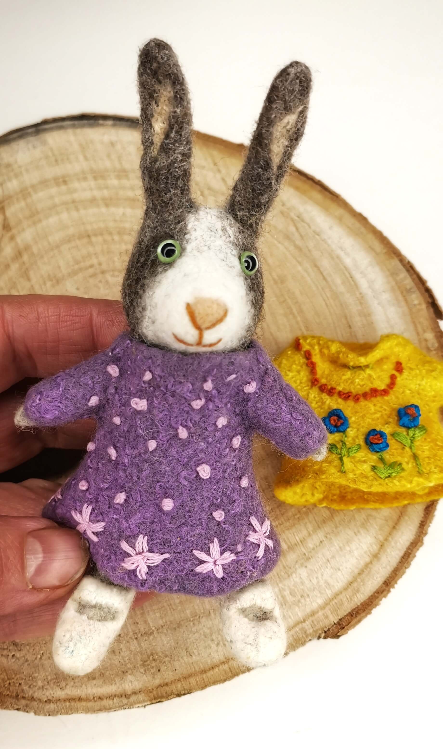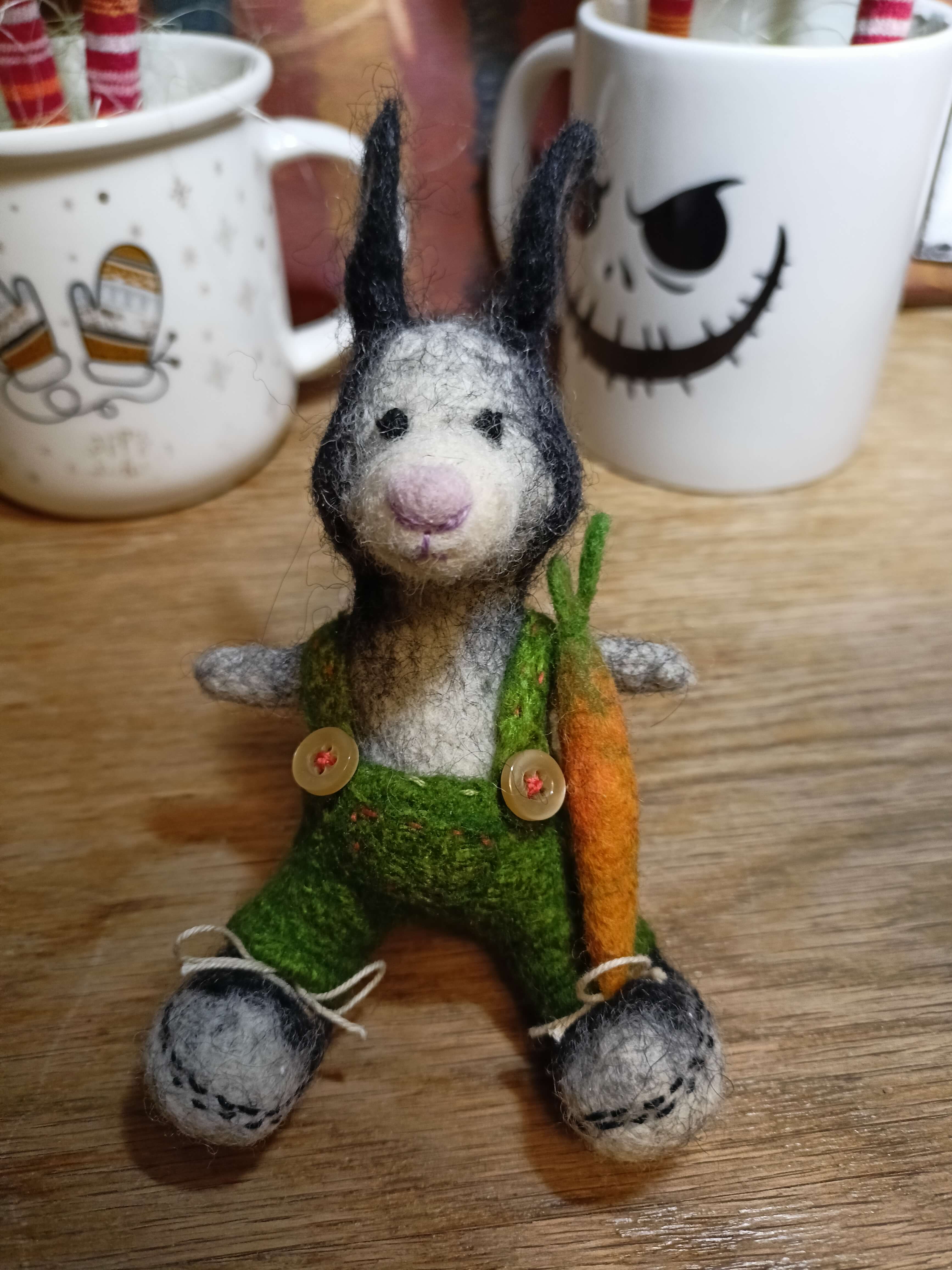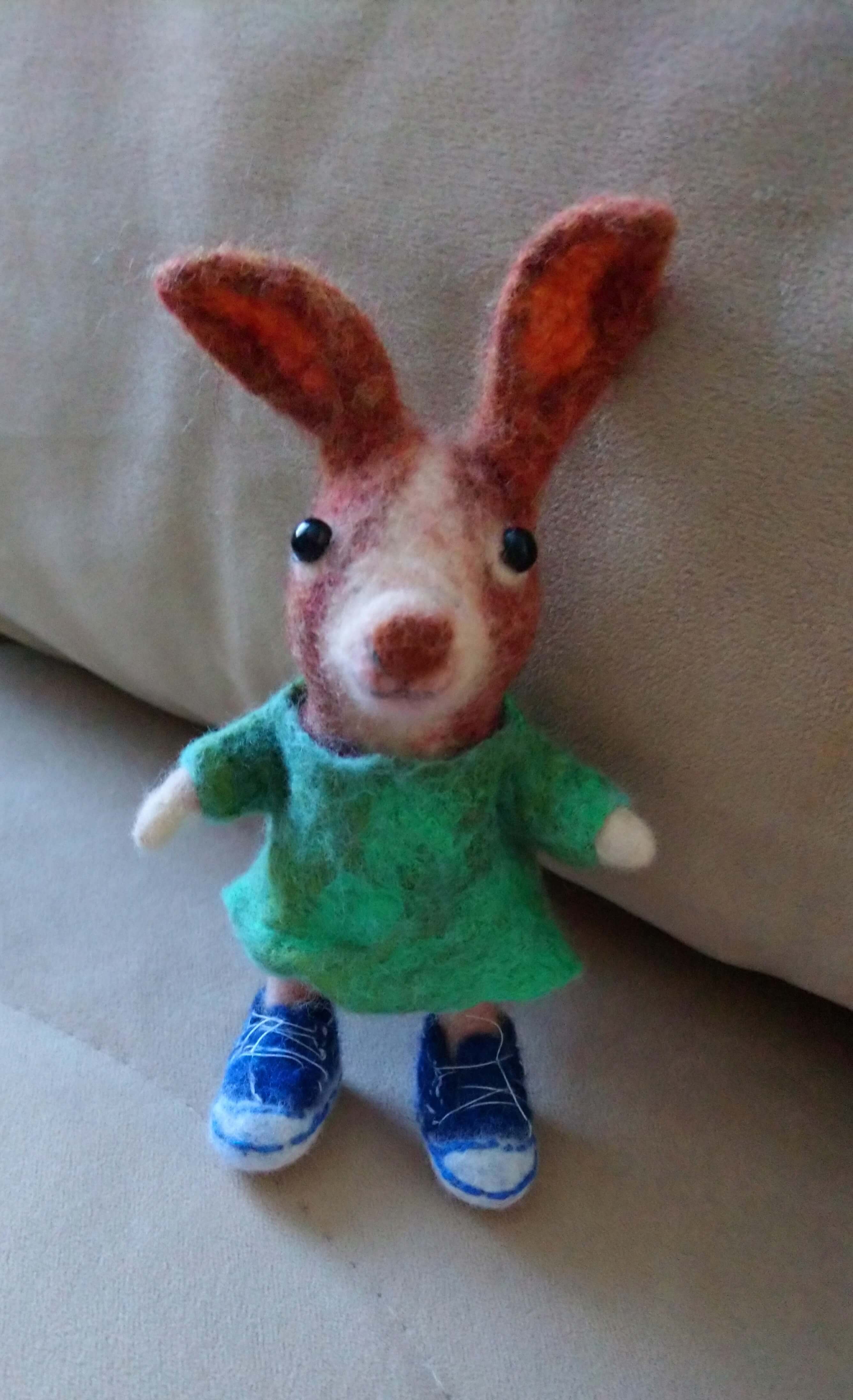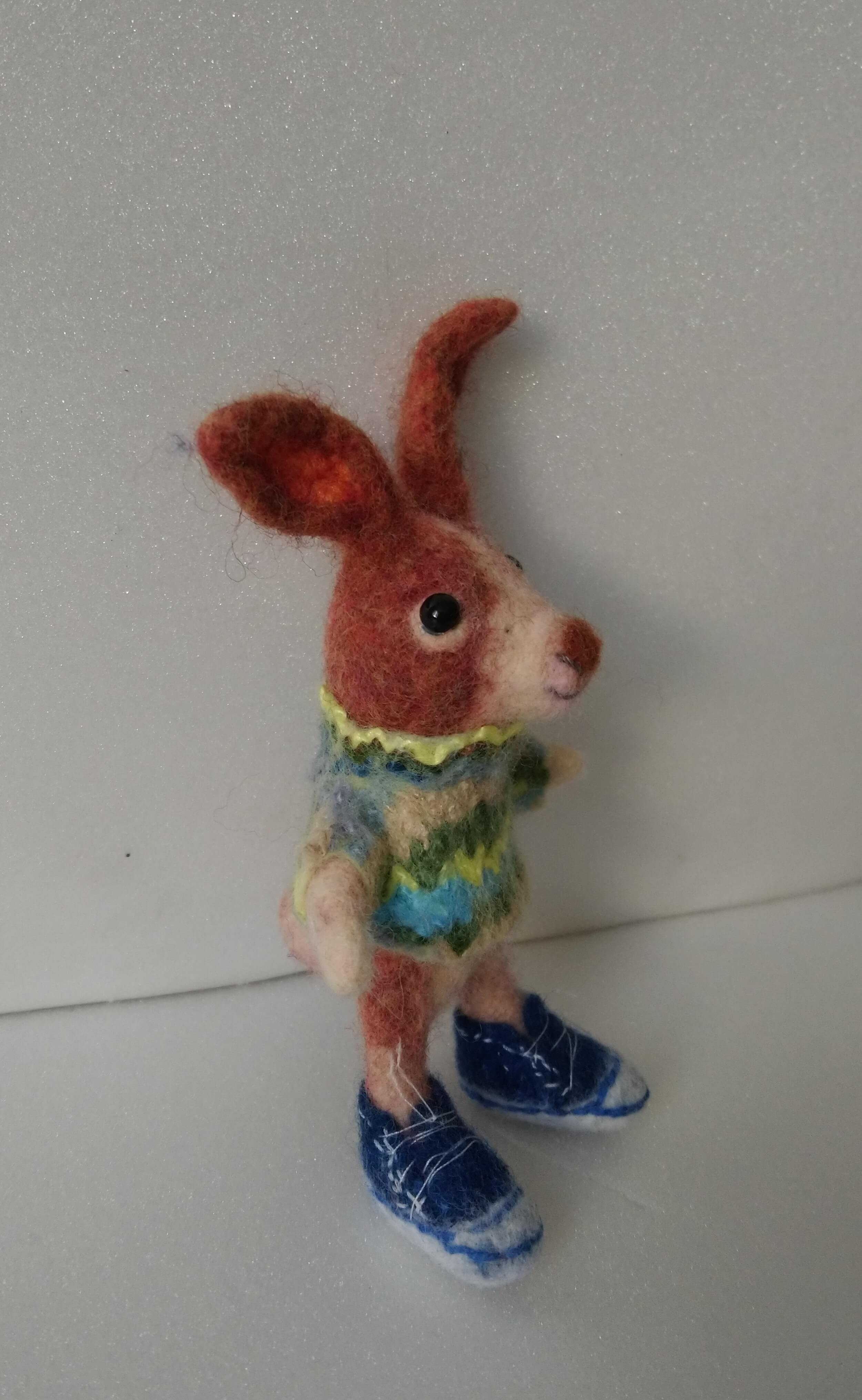 Ярослава, спасибо большое за мастер-класс по кролику. Процесс был долгим и трудным. Мне очень понравились подача материала. В результате с каждым шагом ко мне приходило и вдохновение, и желание все сделать по максимуму. Я делаю плотный войлок( обувь). И для меня это был прям вызов. Немного делала игрушек, но такую миниатюру первый раз. Создание одежды просто фантастический процесс. Немного напортачила с кедами, но сделала выводы. В наше время много людей делают из войлока удивительные вещи. Но делать самой и учить других это два очень разных " умения". У вас это получается отлично. Надеюсь, что моя "кроличье семья" пополнится еще как минимум двумя членами.