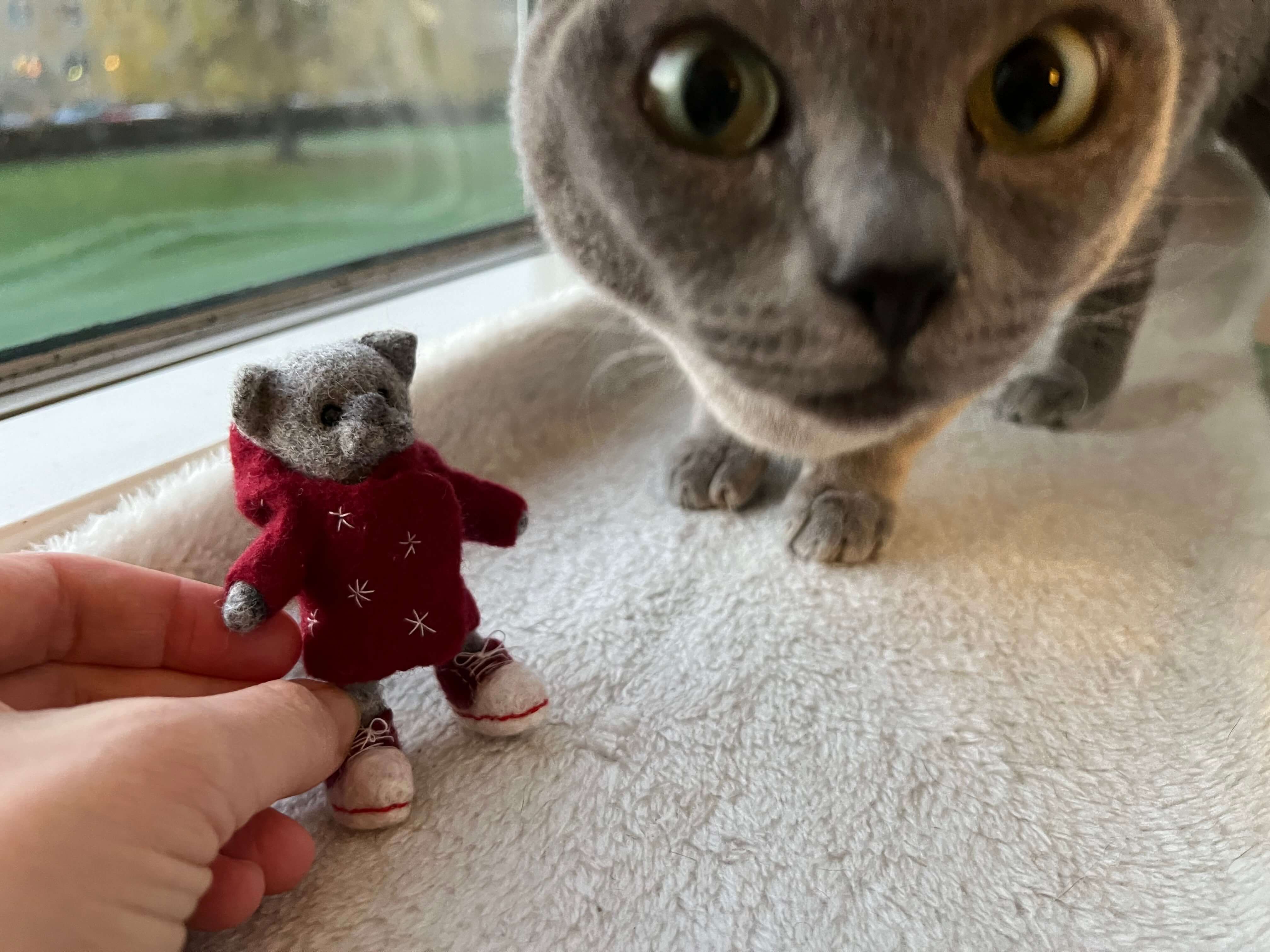 В конце ноября был стрим по кролику. Но мне нужен был кот. Для маленького мальчика в Норвегии, который подружился с нашим котом, когда был у нас в гостях. Дабы кот не замёрз в далекой снежной Норвегии, пришлось экипировать его красным кителем и шерстяными кедами. Мы же любим котиков!
