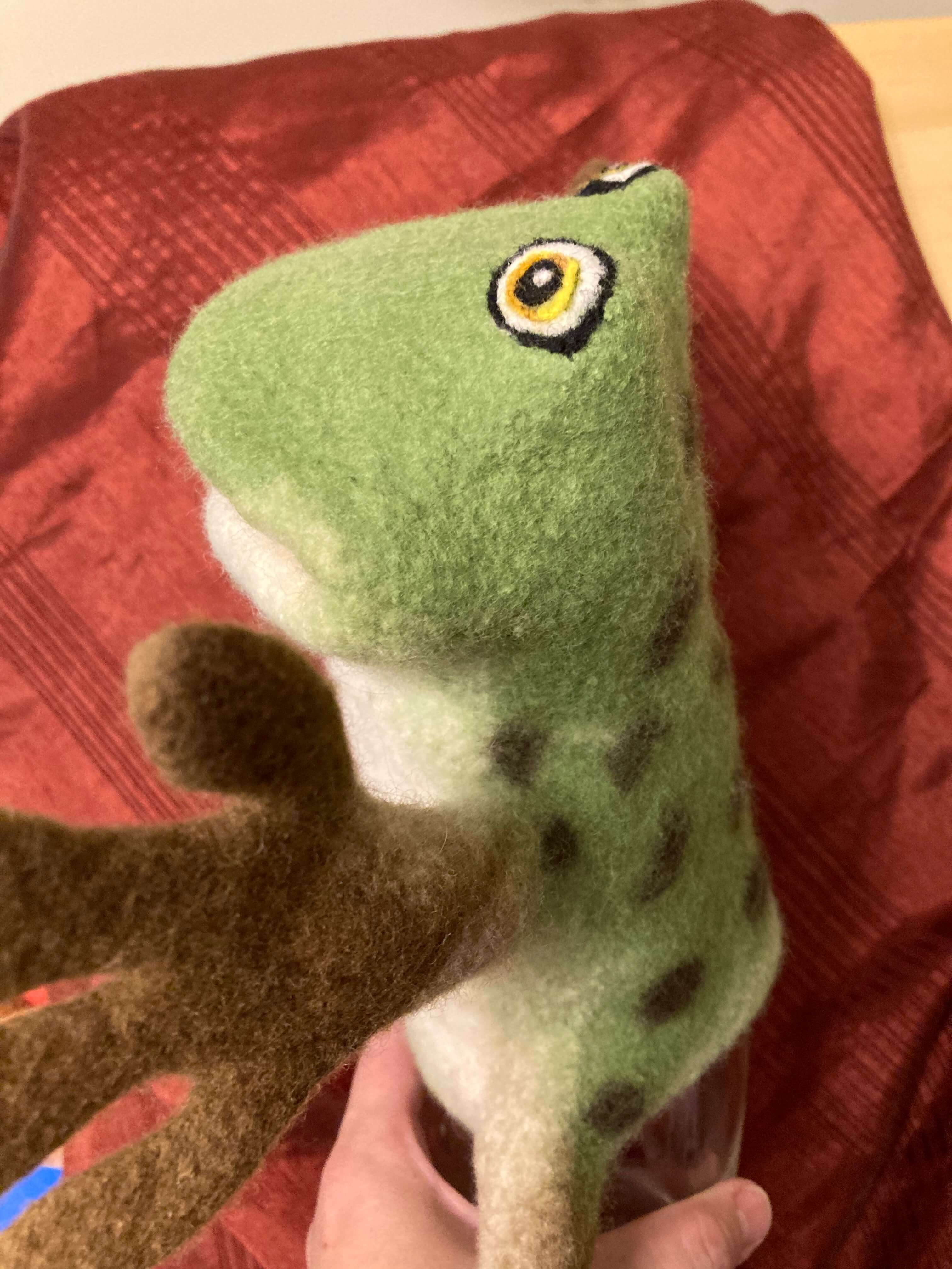 A frog hand puppet for my kids little one year old cousin. Hope he likes his Christmas gift!Cant stop making puppets small and big;)Thanks Yara for passing on all your knowledge! Merry Christmas;)