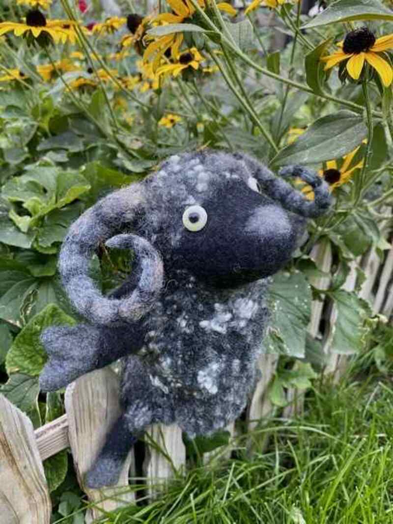I followed your sheep workshop but hadn’t the right materials. I wanted to use alpaca, which wasn’t carded. But it was no good idea. Moreover I removed the resist to early so I felted it huddled together. No way opening it again (see picture). It looks now as a dead animal. This remembered me of a fox. So I started again with the sheep instructions, changed the ears and made the fox. Which I like very much. Now I finally have curls and I made the sheep brooches. Delicious to work with good materials. Thanks for the many good advice.