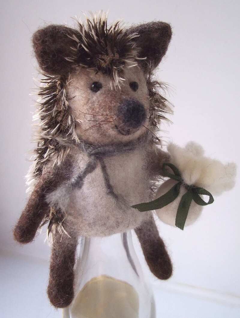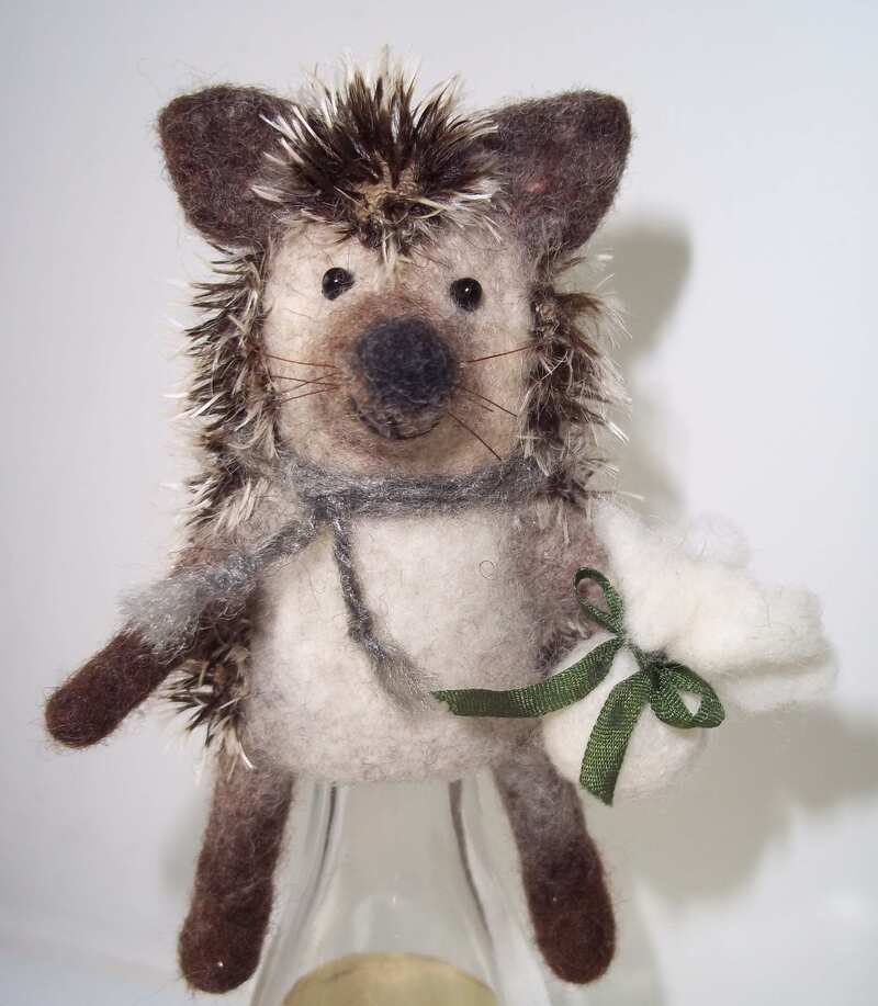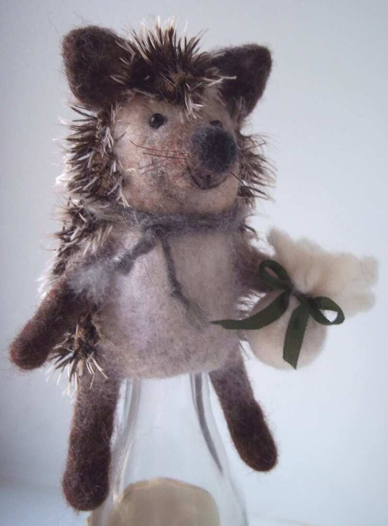 И последний в сегодняшних похвастушках Ёжик с котомочкой! ? Ёжик побежит в подарок взрослой девушке, поэтому на бочок пришила застежку, что бы была возможность носить и как брошку... этот малыш со шкуркой из ёжикового мохера, в котомочке войлочный шарик для объема, а назвать решила так, потому что очень он деловой по сравнению с Ёжиком в тумане... ? Осталась парочка Барашек и Овечка с интересной историей и придумками - скоро покажу........ ?