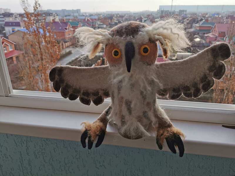 По мастер классу Филина сваляла вот такого филюшку для внучки! Было очень интересно и всё понятно до мельчайших подробностей. Хочу ещё свалять петуха и коня!Спасибо большое, Ярослава!