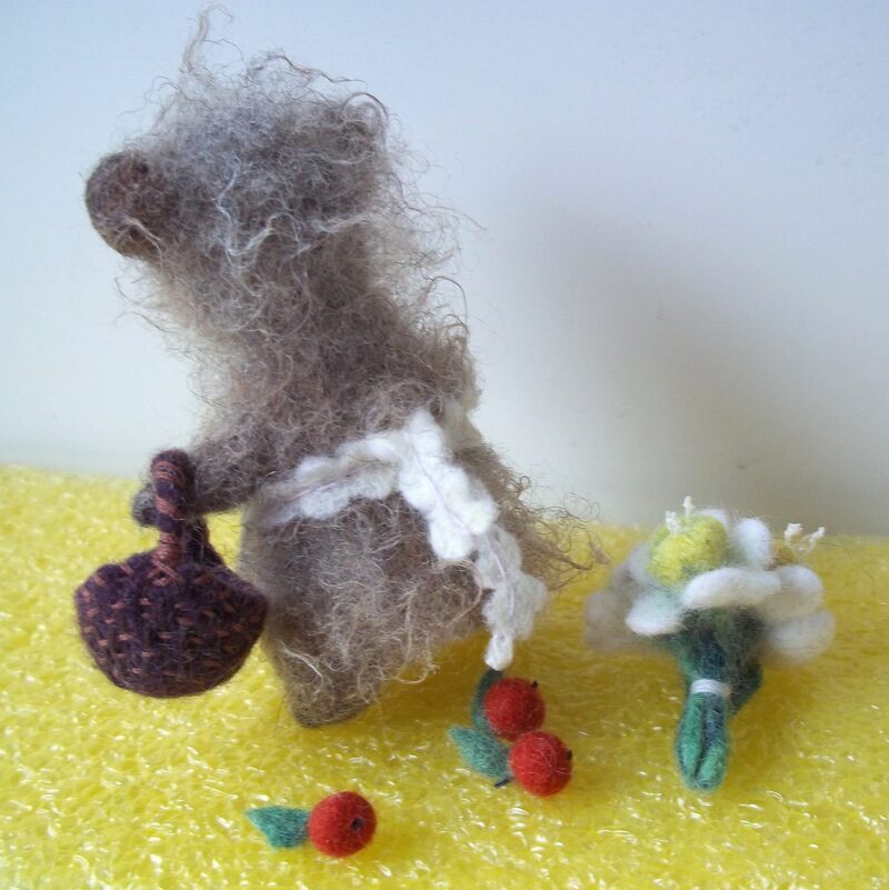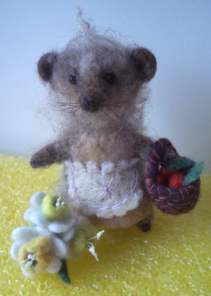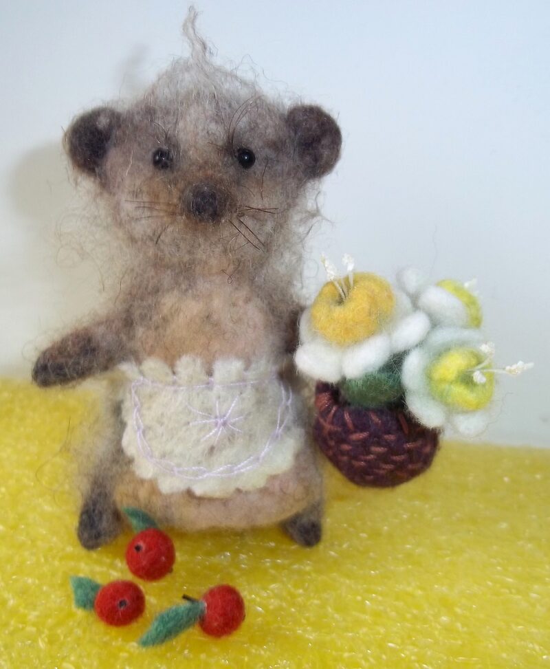 Еще раз хочу сказать - какой великолепный формат учения и общения придумала Ярослава! какой заразительный!!! Я уже делала Ёжиков с ёжиковым мохером и на очном Мастер классе и самостоятельно, но когда увидела каких очаровательных малышей понаделали девочки на Стриме..., в ночи схватилась делать светлого, низенького Ёжика со шкуркой альпака, но, как чаще всего с ними получается - руководят сами! ? Родилась Ежиха, затонировалась потемнее, обзавелась корзинкой (как у Зайки), припасла микрояблочки, да еще и букетом с микронарциссами!!! ? еле заметные бровки сделала из ресничек для игрушек - тяжко их было вклеивать, очень мелкие....