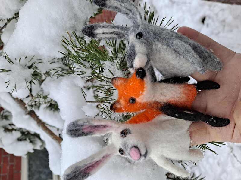 Ярослава, добрый день. Несколько лет назад купила ваши курсы по Би-Ба-Бо. Делала лисиц, лягушек, лошадь, сороку, ёжиков, овечек, хрюшек. Модифицируя шаблон, делала петуха, курицу, оленя. Реально, взрослые превращаются в детей, когда надевают на руку это теплое, душевное чудо. И куда девается суровость брутальных мужчин, когда на него смотрит такая зверушка и шевелит лапками. Однажды на выставке я подарила мальчику-аутисту хрюшку. Он с этой хрюшкой на руке ходил по павильону и разговаривал с ней. Вот ради таких моментов стоит творить! На одном из выступлений Вы показывали, как сделать выкройку игрушки, используя свой палец. Сделала шаблончик и наделала цыплят для семейки петуха и курицы. А в декабре перед годом крысы наделала мышат-крысят на подарки. Как им радовались! И вот когда я узнала о Ваших стрим-курсах, я не раздумывала принимать или не принимать участие в них. Однозначно - принимать! И не пожалела об этом. Интересный формат. Как на реальном онлайн МК. Ярослава, как всегда, - доходчивое объяснение всего технологического процесса изготовления изделия от начала и до конца. Лисёнка сделала, но выполаскивала и придавала форму уже после встречи. Сегодня пошла в магазин за глазками, но увы... такого размера глазок не оказалось. Пришлось довольствоваться тем, что было в моих хомячьих запасах. Мышек делала год назад и фотографировала на чистом снегу сурового северного края. А лисичку - вчера на стрим-курсе.