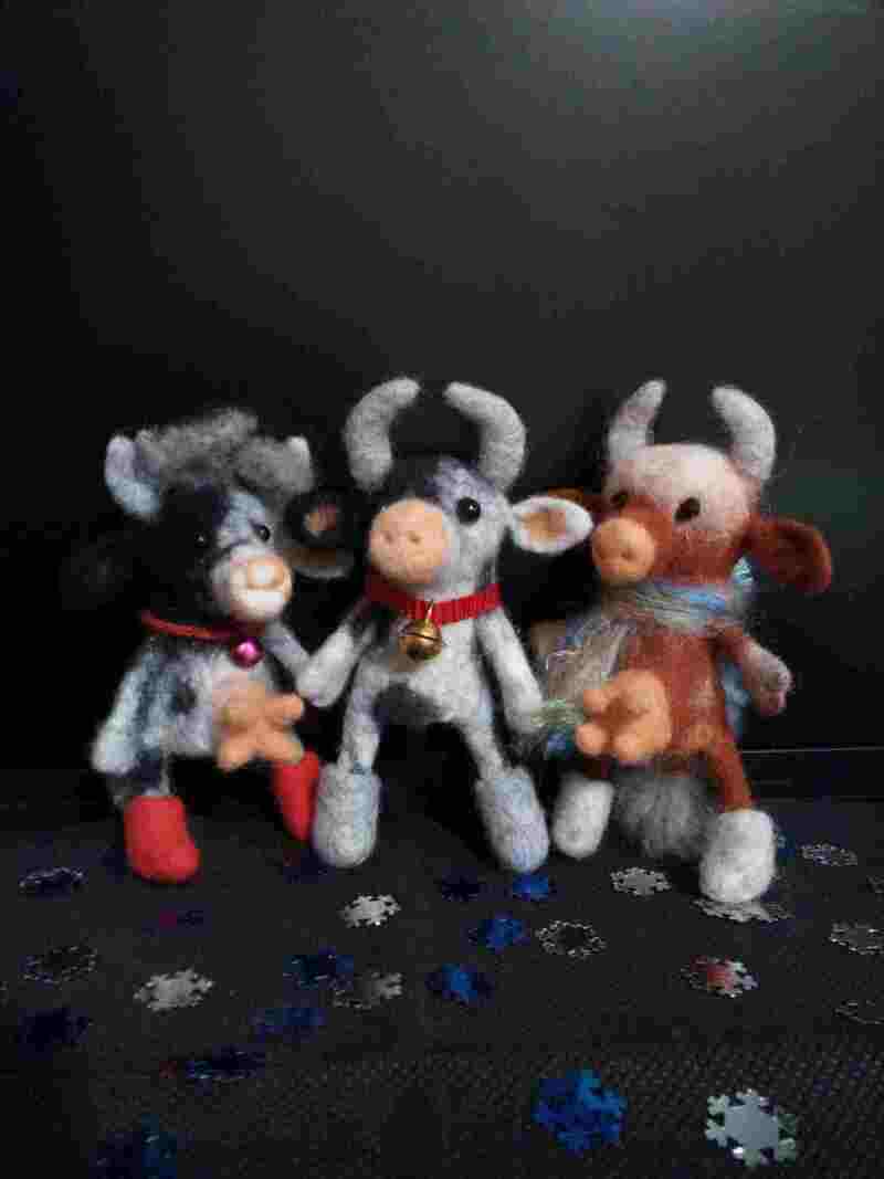 Я очень благодарна Ярославе за ее мастер-классы. Смотреть и слушать ее в эфире - это одно удовольствие. Я тоже делала пальчиковых по выступлению ее на рукодельном форуме. Но в МК по коровке я узнала то, до чего сама бы не додумалась. Они мне так запали в душу, что предпоследнюю ночь прошлого года я легла спать в 4-20, для того, чтобы закончить работу. Всего у меня получилось их 4 штуки, свое небольшое стадо. Они все просто удивительные и каждая из них уже со своей историей. Особенно мне понравилась моя рыженькая, цельноваляная. Хотя я сделала много малышей, но разница очевидна. Буду и дальше учиться, а Ярославе желаю творческого вдохновения, новых МК и новых учеников.